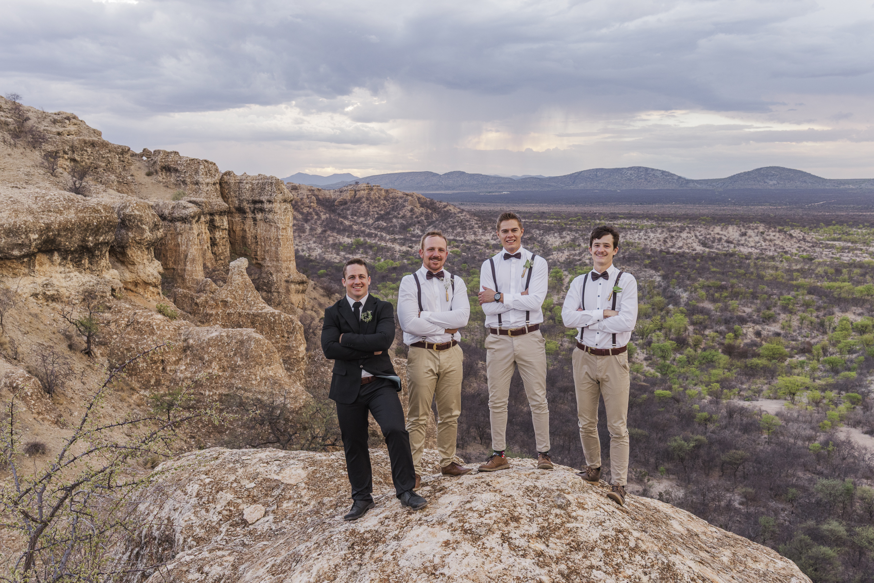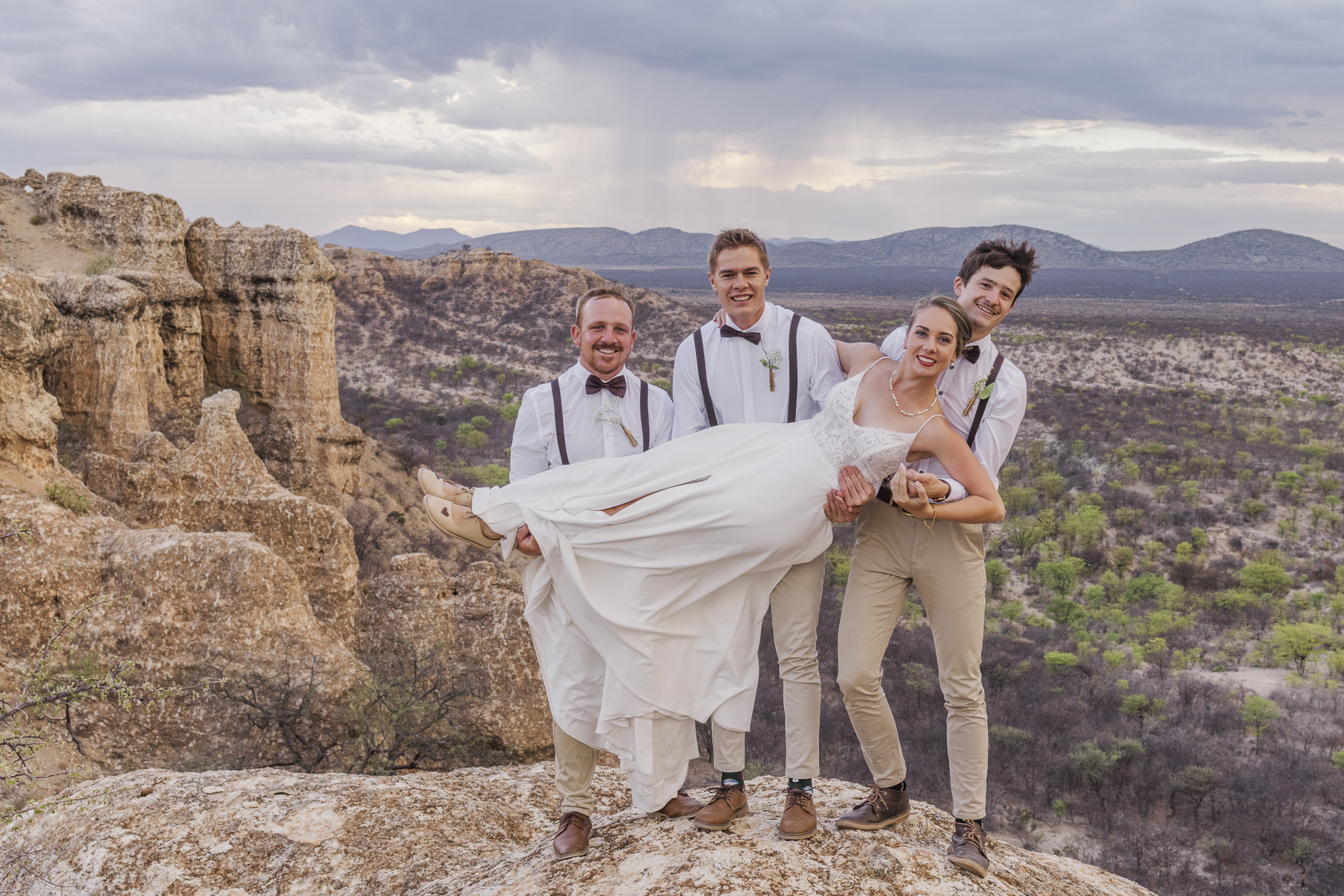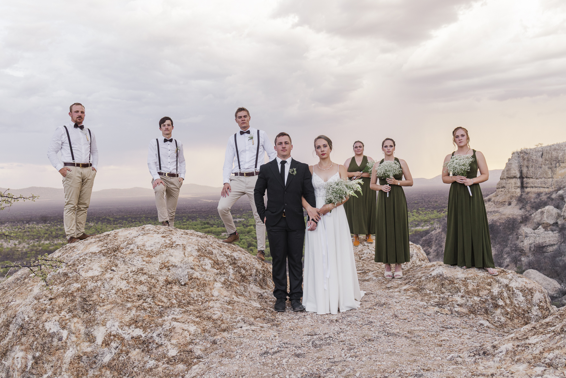 Dit was my laaste troue vir 2024, so kort voor Kersfees. Die wind het ons stukkend gewaai en met tye amper van die rotse af, maar dit was als die moeite werd. Ons het ‘n skouskel van kleure op die terrasse van die Ugab beleef soos wat ek nog nooit gesien het nie. En die jeug saam met my en voor die kamera, is ‘n groep jongmense wat ek so oor tyd leer ken het en ek sou hulle hulle vir geen ander verruil het vir daardie sessie op die rotse nie.