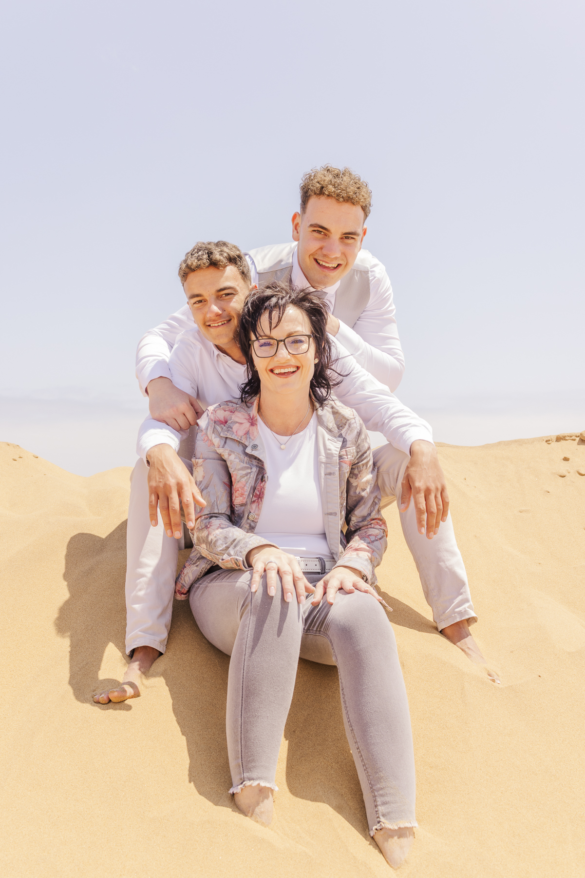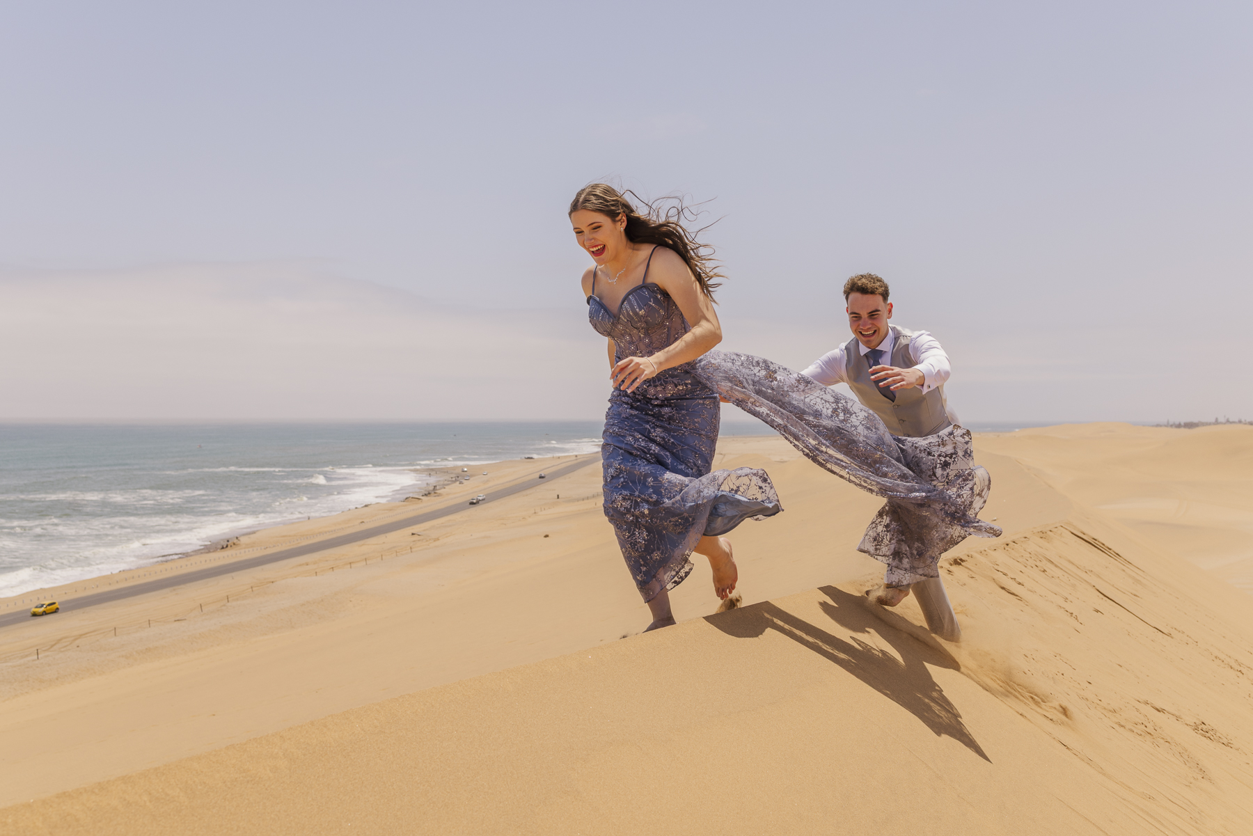I know from Jeandré and Mira’s matric farewell photos that the next day’s family photo session was so much more relaxed than the afternoon of the farewell. When we arrived at the dunes along the Namibian coast, they could just be. They laughed and played, they fell and posed – it just worked, and the photos show it.